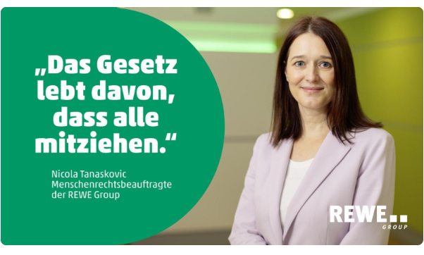 Seit 2023 informieren wir unsere Mitarbeitenden kontinuierlich über die Kerninhalte des LkSG über das Intranet, seit 2024 auch in unserer konzernweiten Compliance-Schulung sowie über die neuen Apps für Markt-Mitarbeitende bei REWE und PENNY. Für den Bereich Einkauf der beiden Vertriebslinien existiert zudem ein internes E-Learning zu den Pflichten des LkSG.